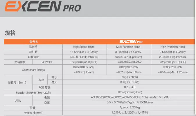 EXCEN PRO是三星貼片機的一種,配有16個吸嘴,旋轉式頭部的高速模塊式貼片機,它實現了世界同級產品中的最高速度120,000CPH,也實現了世界最高的面積生產性。