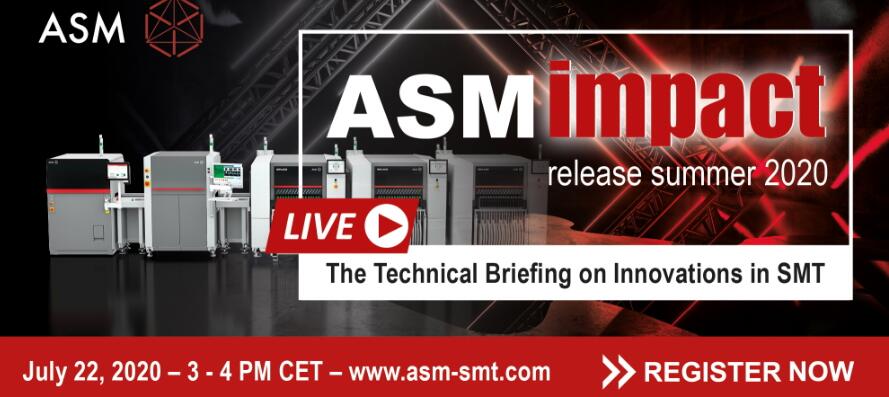 ASM將于7月22日下午3點至下午4點在名為“ ASM Impact – 2020年夏季發(fā)布”的直播中展示SMT生產(chǎn)的最新硬件和軟件版本。除了專家聊天之外,用戶還可以在分拆會議上與ASM專家討論更詳細(xì)的問題。
